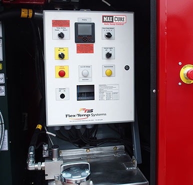 Maximize curing in cold harsh weather concreting conditions. Max Cure controls the supply or return temperature for balanced heating when curing. It is fuel efficient heat control for frost prevention, pre-pours, and spoil pile warming.