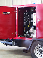 Via Text Message– notifications are sent when temperature drops or fuel is low. Many different users may be notified– even gas & oil companies for refueling. Plus with GPS owners can track their equipment.